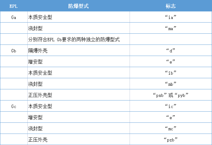 (5)部分防爆型式與EPL的對(duì)應(yīng)關(guān)系