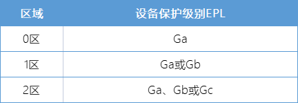 根據(jù)危險(xiǎn)場(chǎng)所分類,防爆區(qū)域與適用的設(shè)備保護(hù)級(jí)別EPL關(guān)系如下: