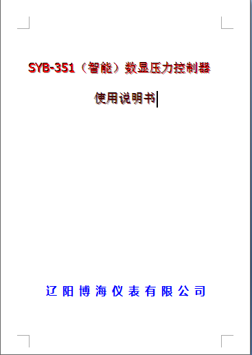 SYB-351(智能)數(shù)顯壓力控制器-使用說明書